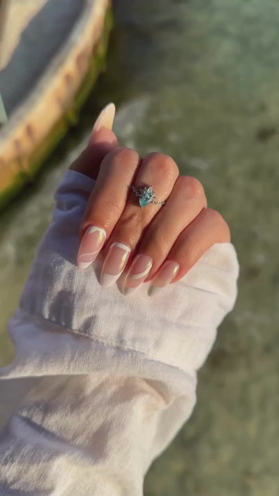 احتضني هدوء البحر وتألقكِ الداخلي مع خاتم "أوشن إمبريس" القابل للتعديل، المصمم بأحجار ثلج مجروش بلون أزرق مائي يعكس الصفاء والسكينة